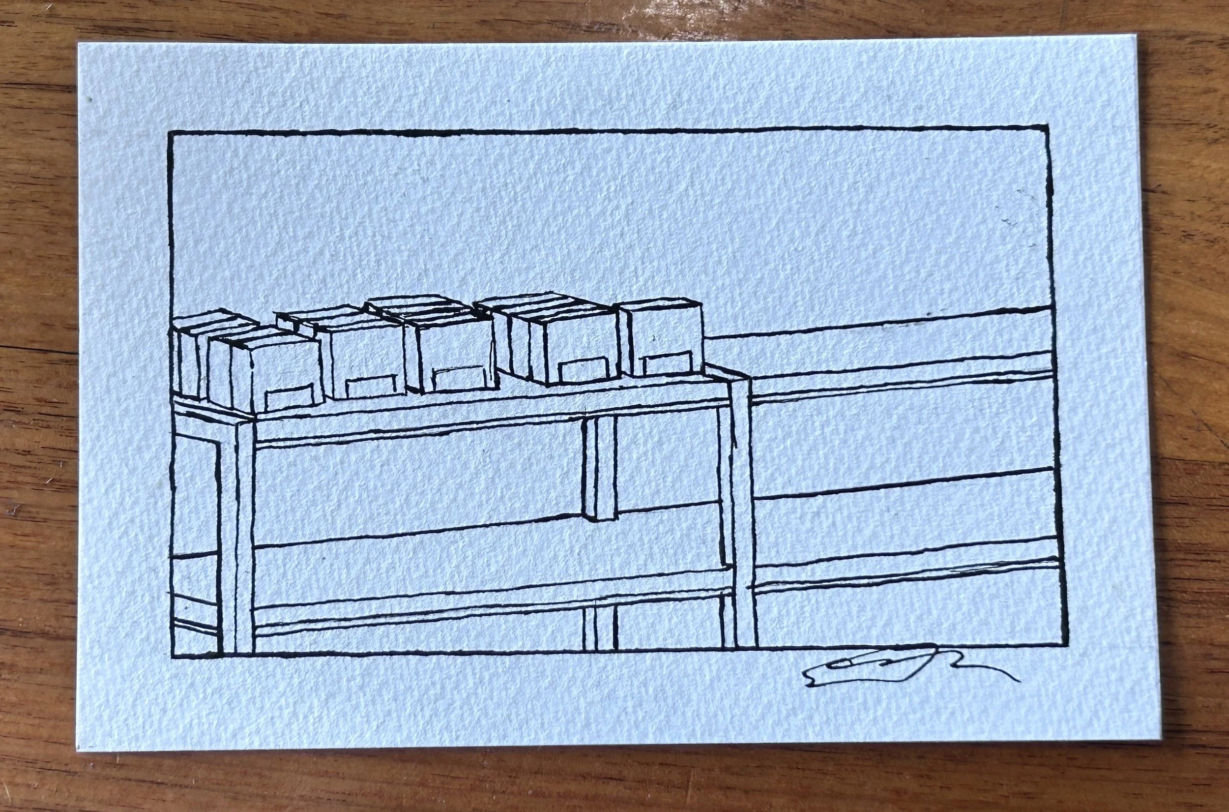 Shelved Projects, 2025, Ink on Watercolor Paper, 4 in x 6 in