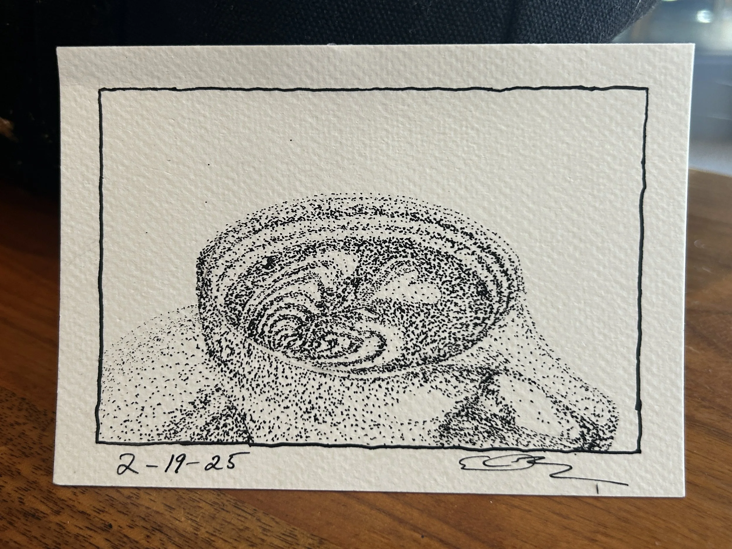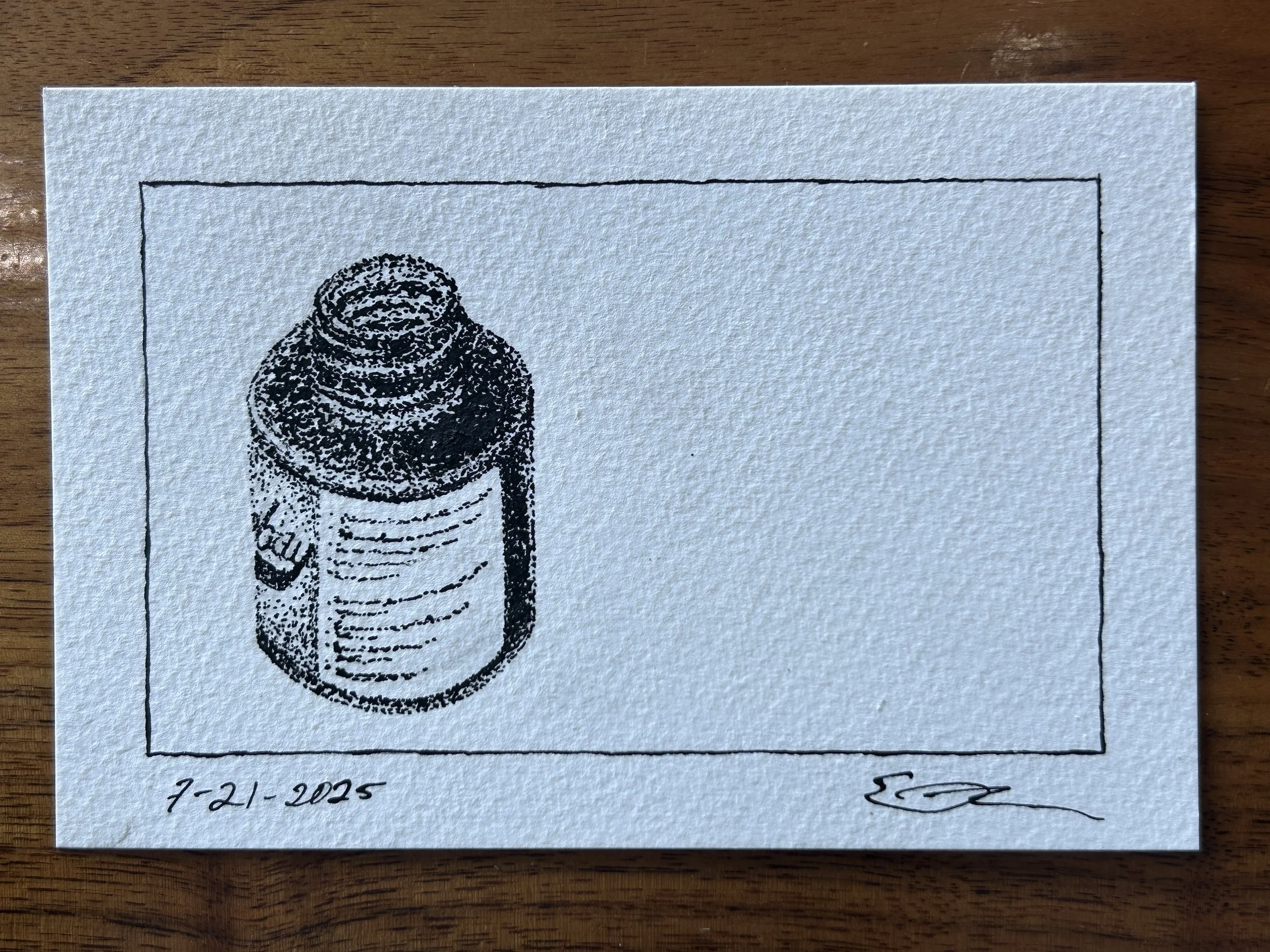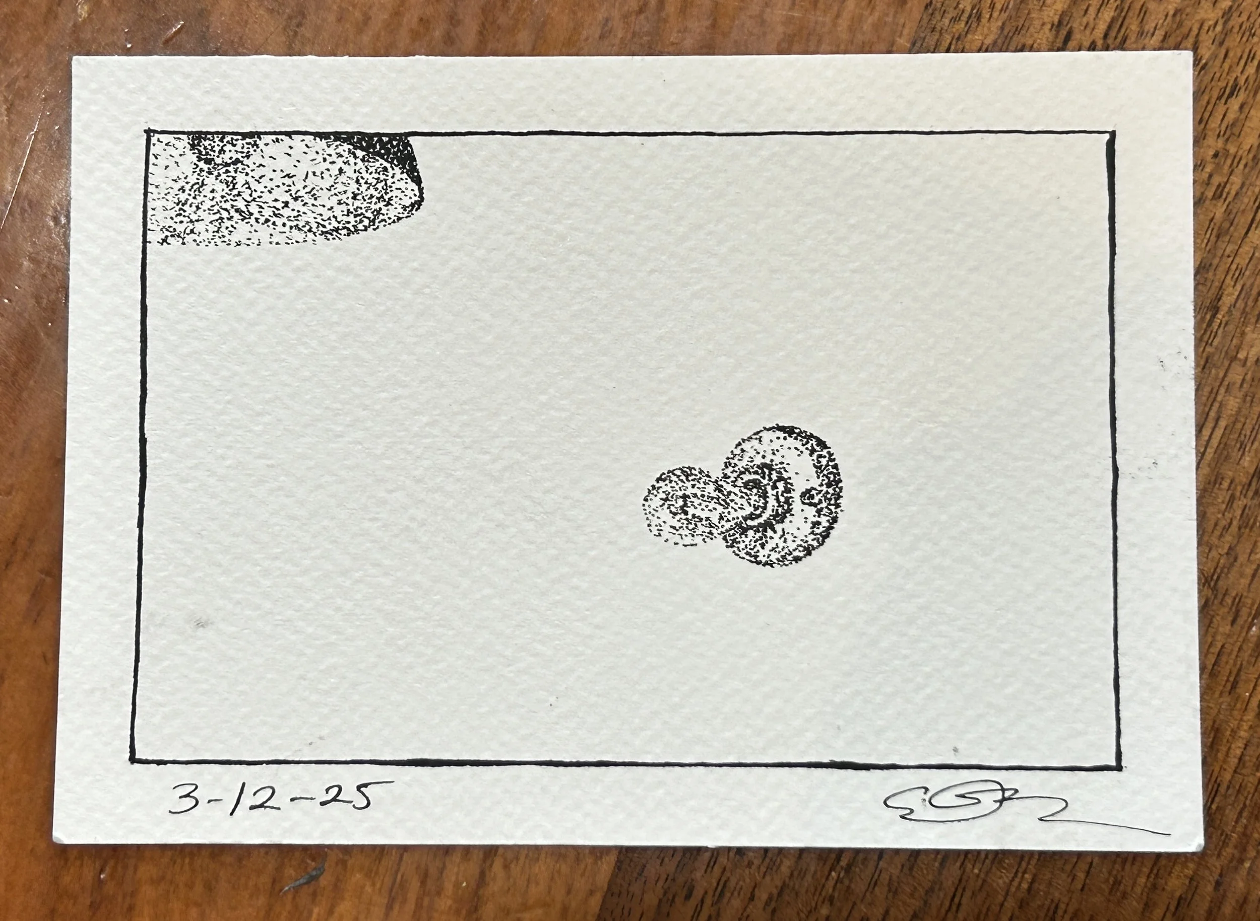 Daily Bread, 2025, India Ink on Watercolor Paper, 4 in x 6 in