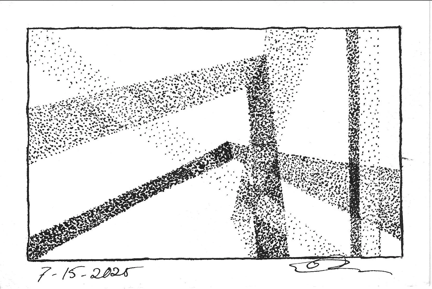 Observation Deck, 2024, India Ink on Watercolor Paper, 6 in x 9 in