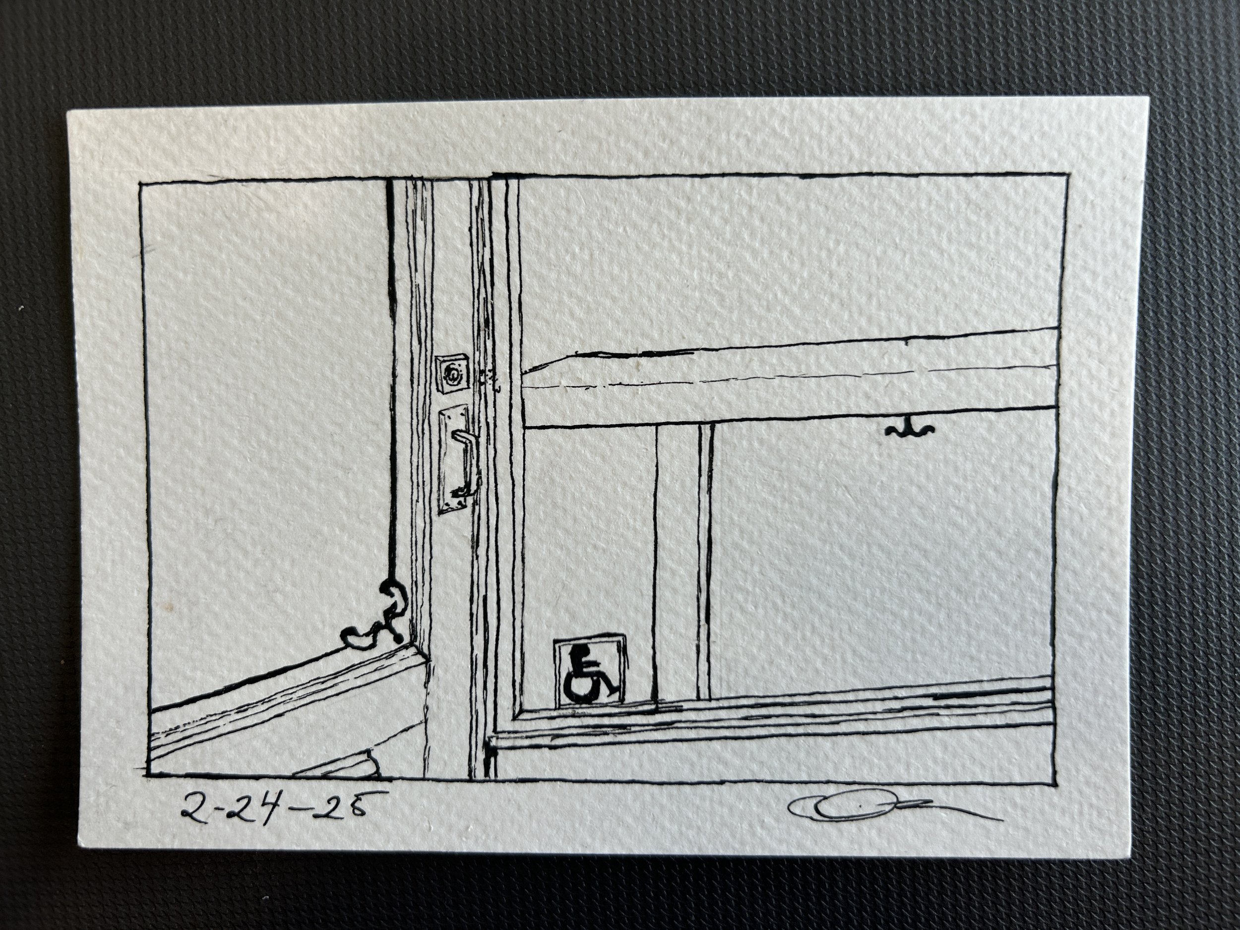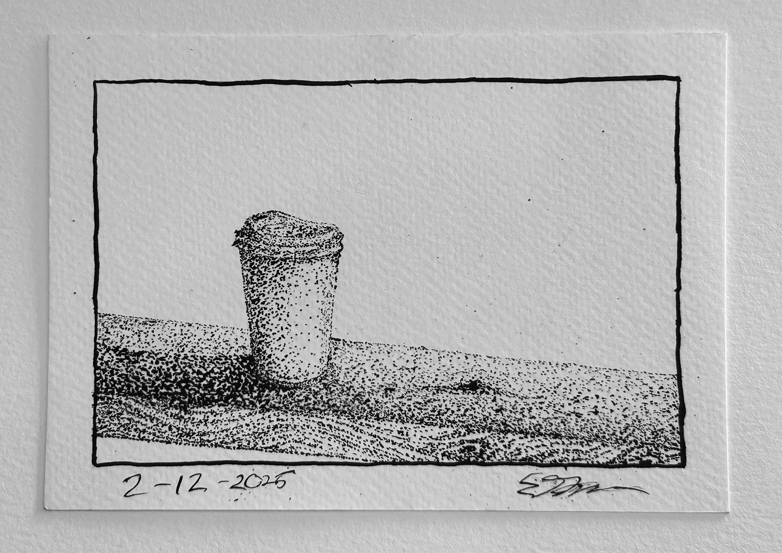 Waiting for Jim, 2025, Ink on Watercolor Paper, 4 in x 6 in